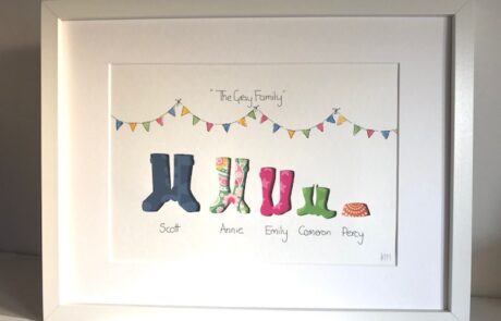 Annie is based in Buckinghamshire and studied Art and Design and Technology.  Over ten years ago she started making personalised pictures as birthday gifts for her son to give to his friends when he went to a birthday party.  He would take along a picture of a “Cammo” Shark or a Unicorn with the recipient’s name as the “title” and for the first time she was getting thank you letters from the Mummies saying how wonderful it was to receive a gift that was something they would truly treasure as supposed to a lump of plastic that would quickly get forgotten or broken.  The range of images grew and grew and Annie Gray Designs was born.